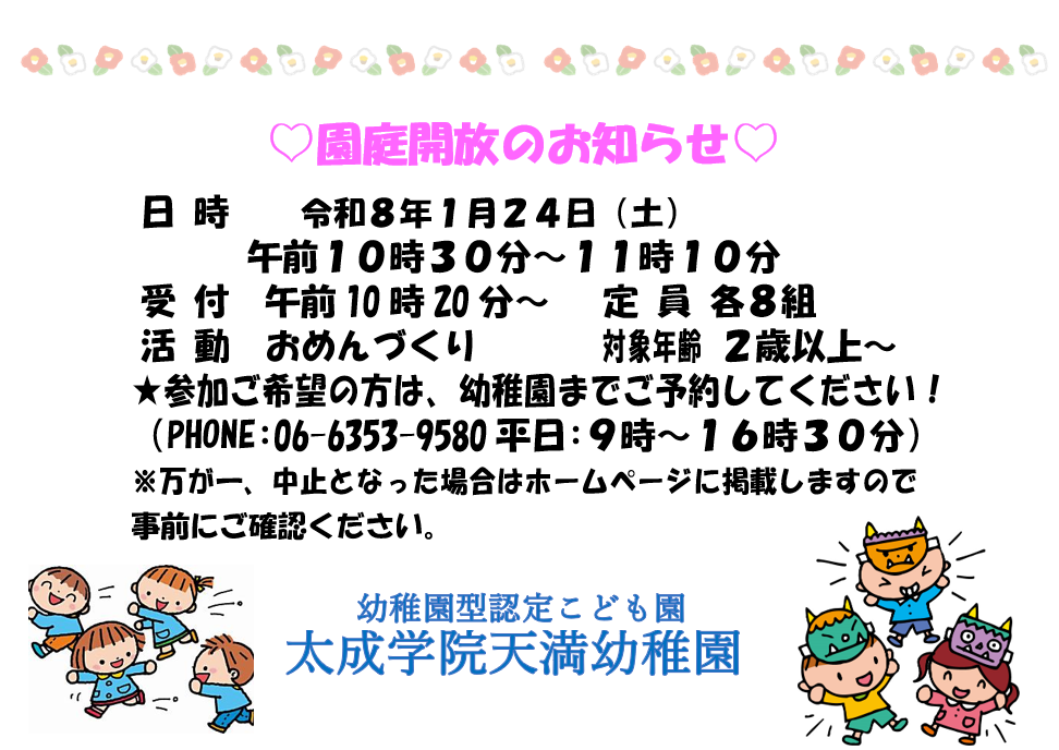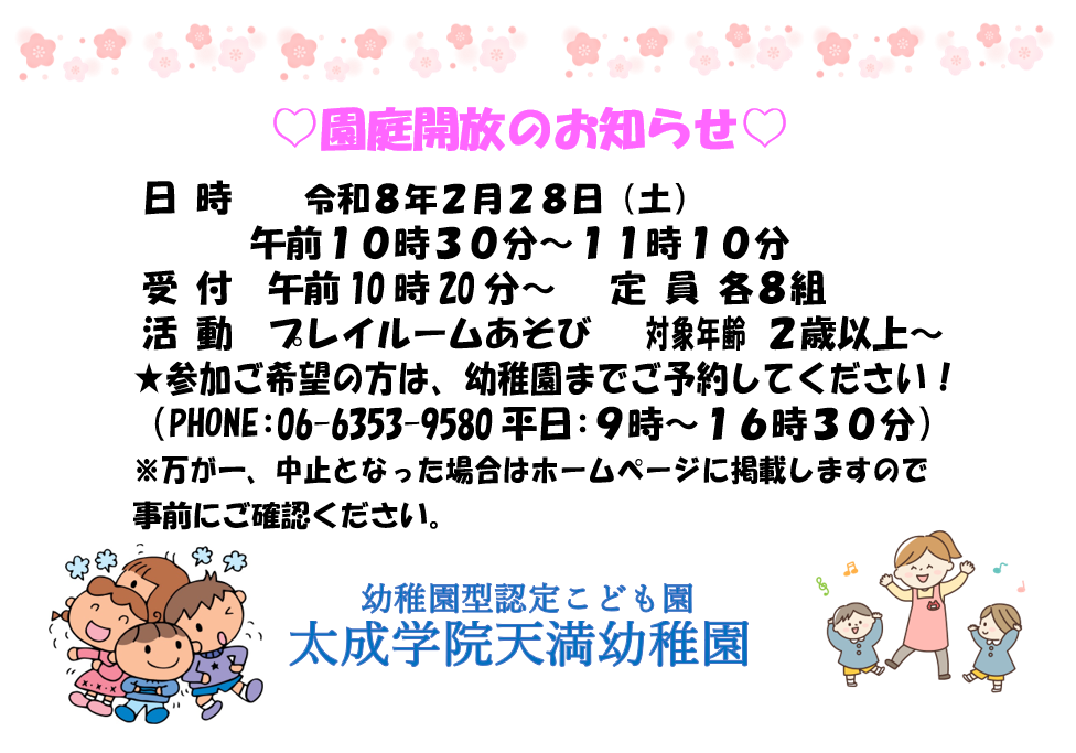 1月・2月園庭開放のご案内