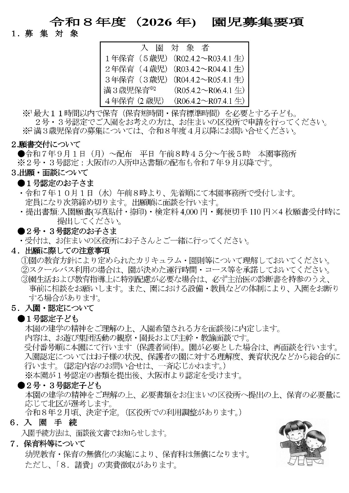 【更新】『令和8年度(2026年度)園児募集要項』を掲載します