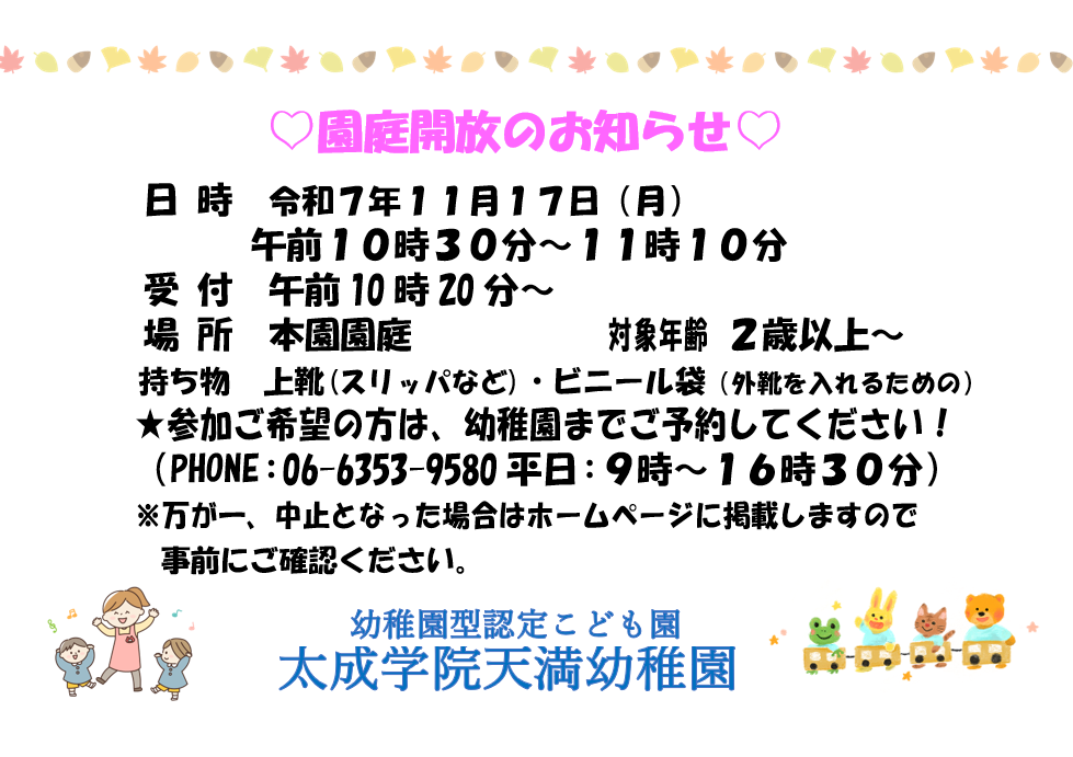 『令和8年度(2026年度)園児募集要項』を掲載します